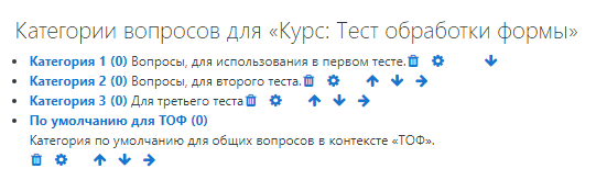 Прежде чем добавить в тест вопросы, необходимо их создать, для этого используется Банк вопросов. В банке вопросов есть возможность создавать вопросы разного типа, разделять их по категориям и использовать в разных тестах на курсе.
