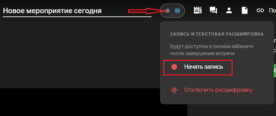 - В комнате мероприятия наведите курсор на иконку "Запись" (в панели управления).