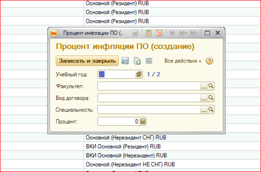 Путь: БазаУниверситет -> Платное обучение -> Служебное. Процент инфляции ПО.