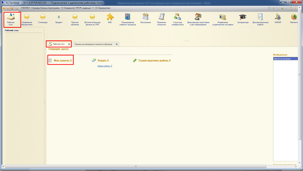 Путь: База Университет -> Рабочий стол -> Текущие дела. Мои задачи