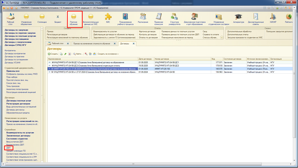 Путь: База Университет -> Платное обучение -> Служебное. ДБП