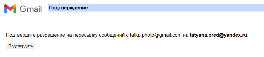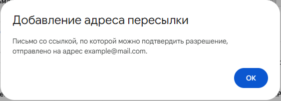 Чтобы подтвердить адрес, зайдите в почтовый аккаунт, на который будут пересылаться письма, найдите письмо от Google и подтвердите пересылку, перейдя по ссылке в письме.