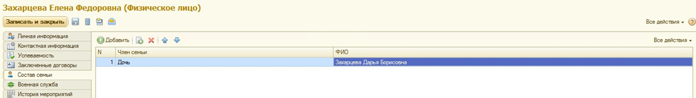 «Состав семьи» в обязательном порядке заполняется для несовершеннолетних Обучающихся (в том числе обучающихся ВКИ), а также для совершеннолетних Обучающихся, у которых «Плательщиком» по договору выступают члены семьи!!!